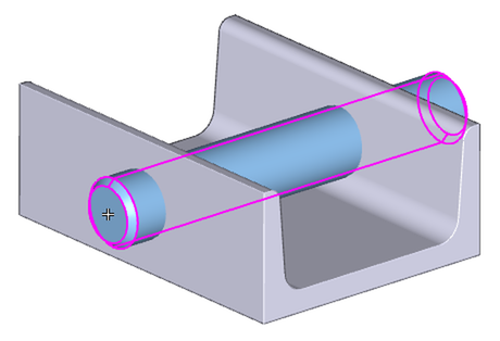 Beispiel für selektives Vereinigen. Der Zapfen soll mit dem U-Eisen vereinigt werden; dazu wird er an der im Bild gezeigten Stelle ausgewählt.