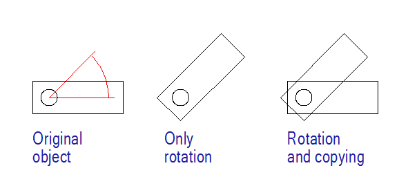 Rotates dynamically using the cursor. Select objects, define the center of rotation, and select a reference point. The cursor movement defines the direction from the rotation center to the reference point. You can choose to rotate only, or to rotate and copy.