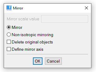 If you select non-isotropic mirroring, the mirrored object will be created on the same side of the mirror axis (in case of positive mirror value), and will be scaled perpendicular to the mirror axis. Non-isotropic mirroring is not possible for dimensions. Non-isotropic mirroring scales objects only in one direction.