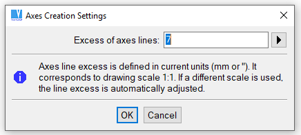 | Creating axes, you can set excess of line ends. Click the corresponding icon in tool-bar. |
