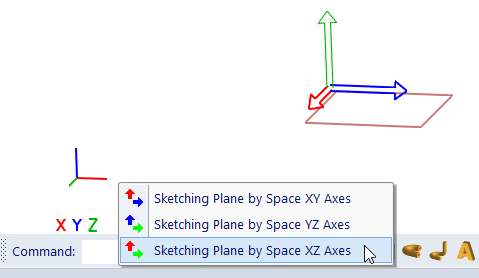 Following features are available at pop-up menu, after you click contours of inactive sketching plane or XYZ axes of active sketching plane: