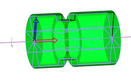 | Redefine rotation axis. Rotation axis is the X axis of solid axes and simultaneously, base sketching plane axes. If you need to change the solid profile relative to rotation axis, you can move 2D objects. Sometimes, it is necessary to redefine the axis in space. To do so, define first and second point of axis. These points are defined in active sketching plane. |