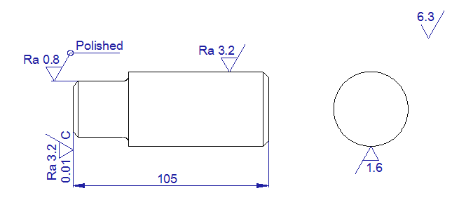 Finish symbols are created by entering a roughness value, or by selecting a symbol for not-machined surfaces. Symbols can be attached to a line, arc or dimension witness line, or they can float. When attaching to a 2D object, you can drag the symbol around the object before selecting its final position.