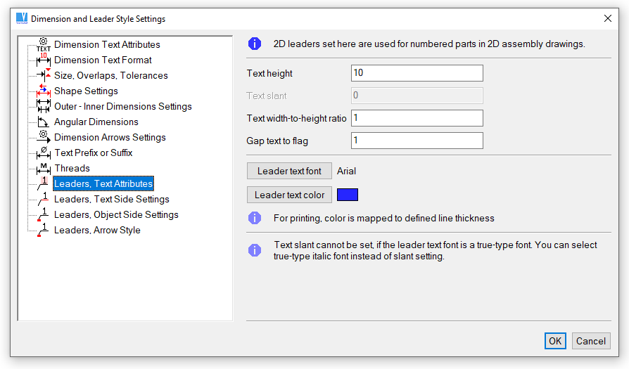 Changing dimension attributes allows you to set dimensioning according to various drawing standards, like DIN or ANSI. Dimension attributes are used also for finish symbols or single or multiple text arrows.