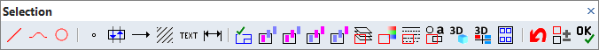 Example of 2D toolbar available for selection of single objects, and additional option icons