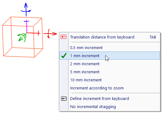 Dragging increments are defined as fixed length increments. However, you may also select dragging increments changed according to zoom. In such case, the larger zoom is, the smaller increment is used.