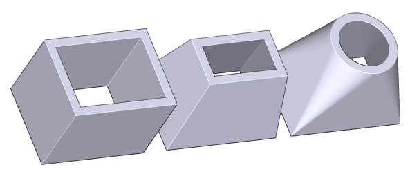 Lofted solids are created by connection of two or multiple profiles. Each profile is defined at its own sketching plane. Each profile must contain the same number of segments (like lines, arcs, circles or NURBS curves). Unlike extruded profiles, lofted profiles may contain only one inner (inserted) profile.