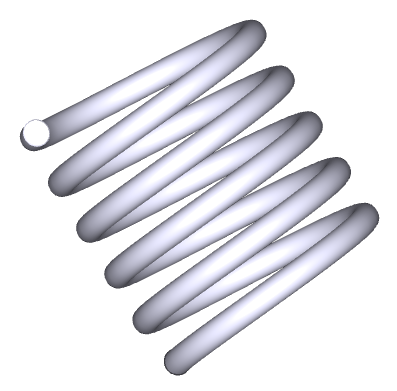 Creates a solid by extruding and rotating a 2D closed profile. You can choose whether the profiles represent the radial, normal or axial section. For example, a spring uses a circle as the normal section. Using a negative rotation angle creates a helix with left ascent.