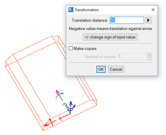 ソリッド変換の例。Z 軸に沿ってソリッドが平行移動します。